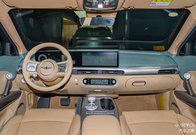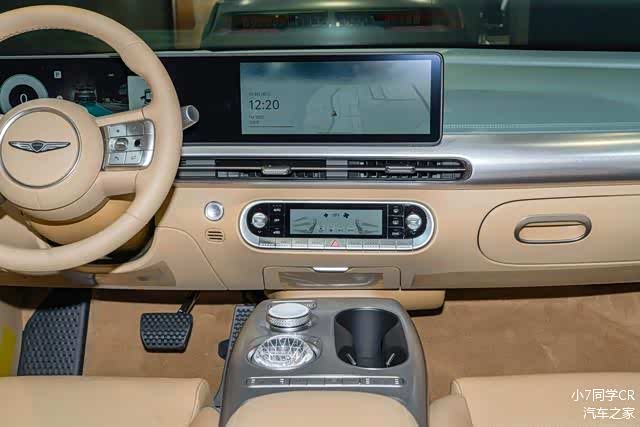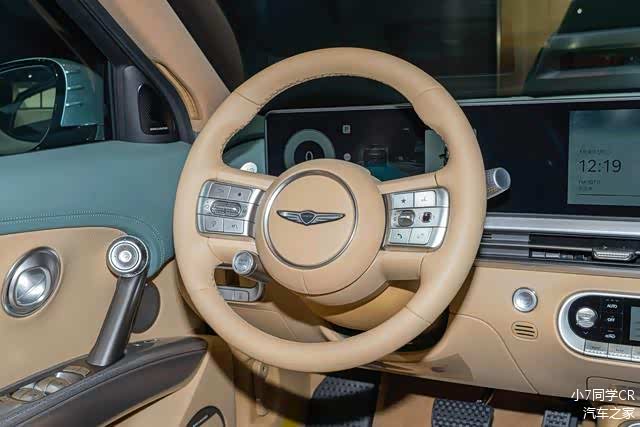 內飾規劃部分,捷尼賽思GV60中控臺區域搭載了雙幅式方向盤(旗艦版支撐電動方向盤/回憶/加熱)、12.3英寸液晶外表+12.3英寸中控屏組成的中控雙聯屏。