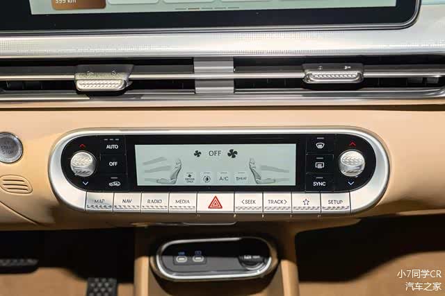 一起,捷尼賽思GV60還選用了水晶球造型旋鈕式電子換擋組織,而且在中控屏下方還安置顯現屏+按鍵空調操控區域。